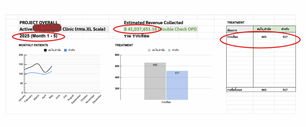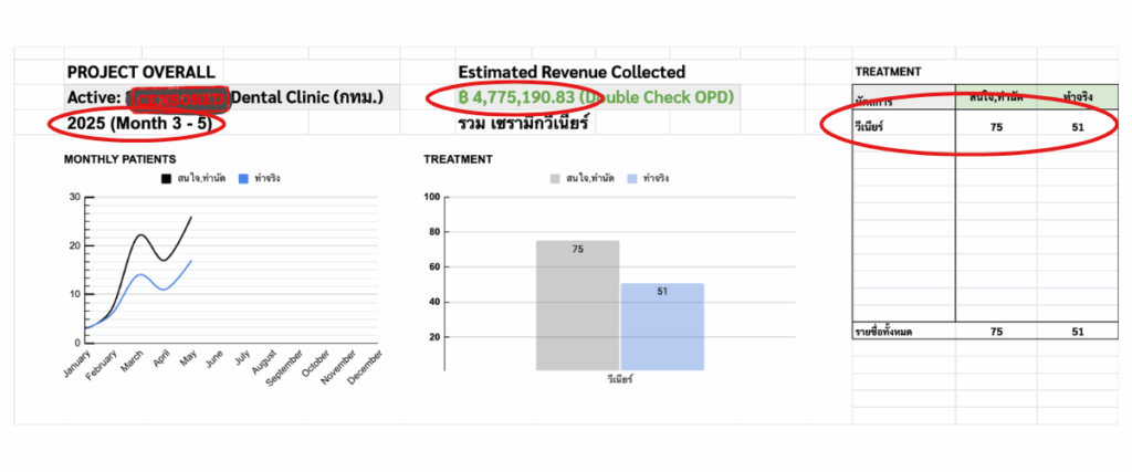 Location: กทม | ยอดเพิ่ม 5.6M | เซรามิกวีเนียร์ 37 เคส+รากเทียม 43 เคส | 4 เดือน