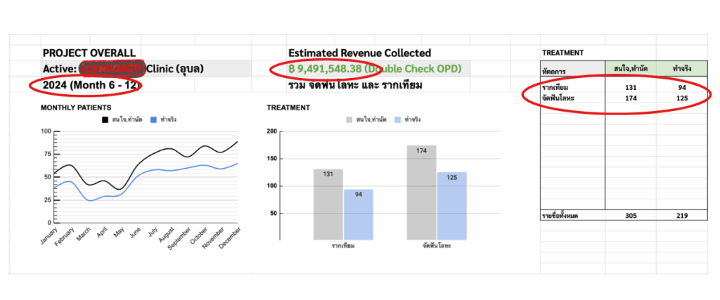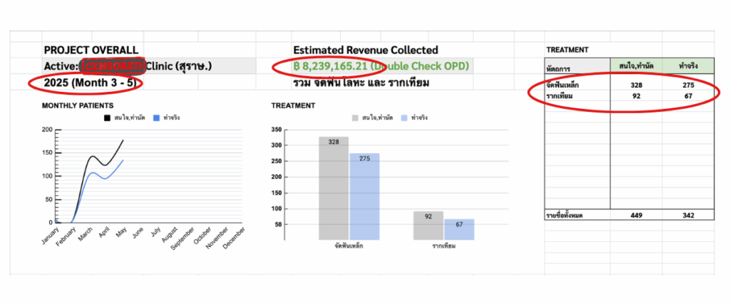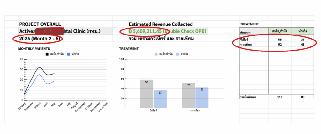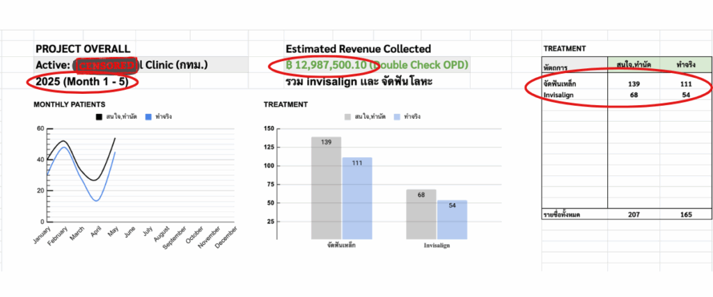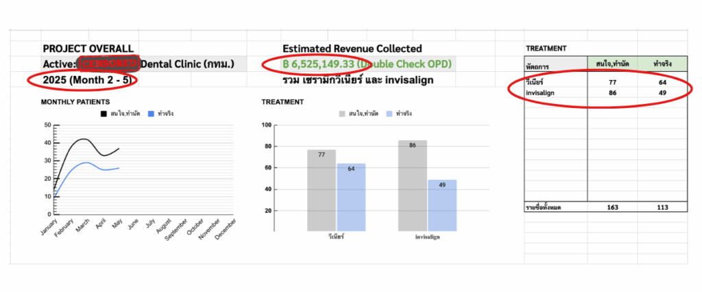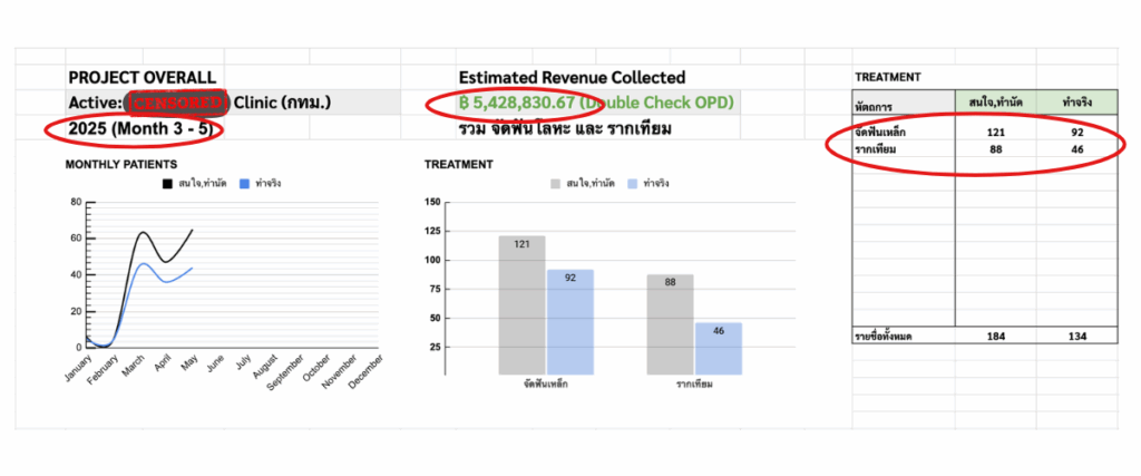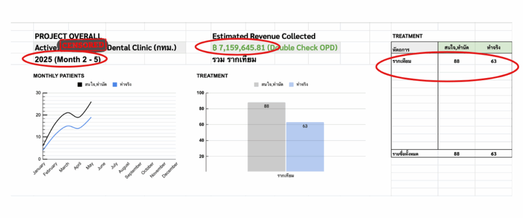 Location: กทม | ยอดเพิ่ม 5.4M | รากเทียม 46 เคส+จัดฟัน 92 เคส | 3 เดือน